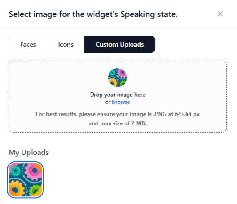 Custom image uploads are also supported, allowing the widget to visually align with your brand and website environment.